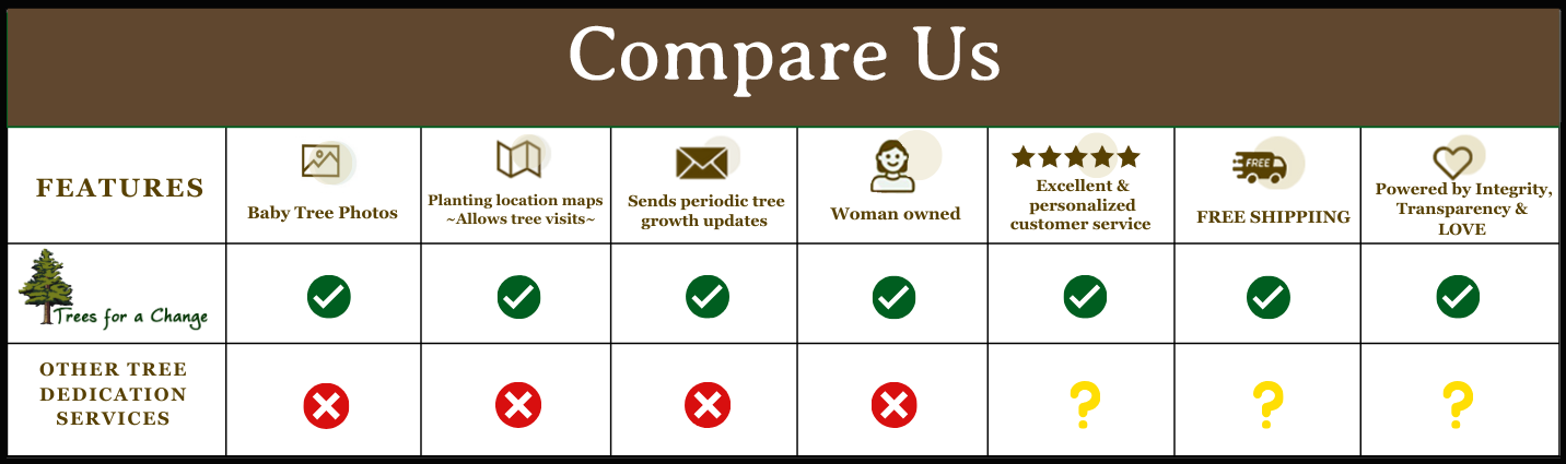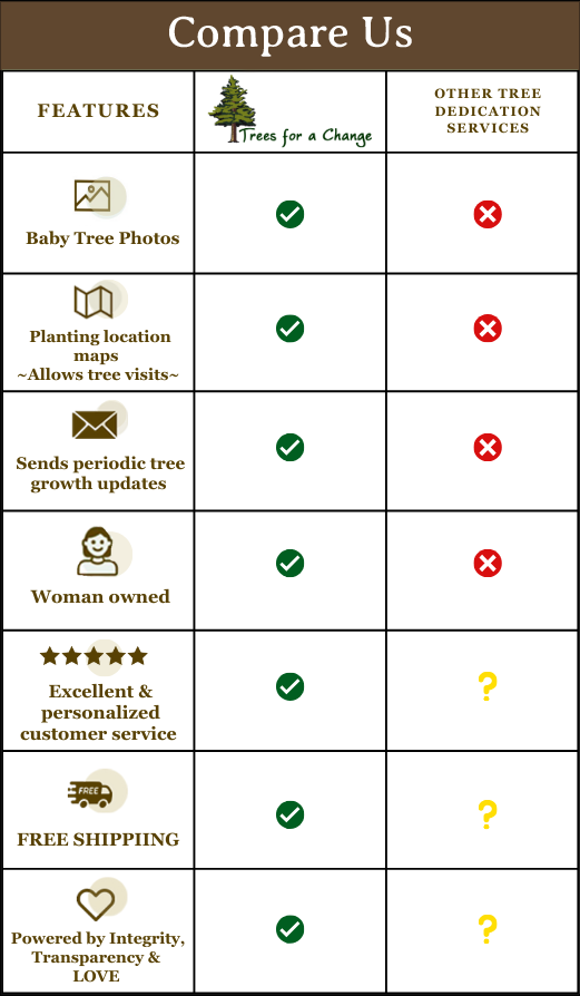 Finding a meaningful way that truly shows you care can be challenging. Gifts tend to be quickly forgotten, regifted, or discarded, like flowers that wither away. That's why we offer something different: tree gifts.