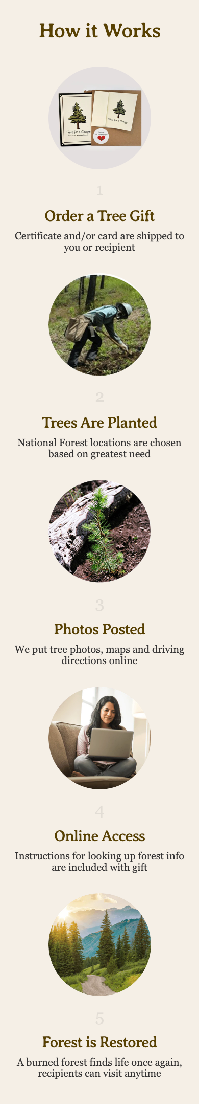 When you choose to plant a tree in a National Forest in need of restoration, you're giving a gift that lasts, grows, and contributes to the environment. Your recipient will receive a beautifully crafted certificate made from 100% recycled paper, a tangible symbol of your thoughtful and lasting contribution. So make your gift matter—not just today, but for generations to come.